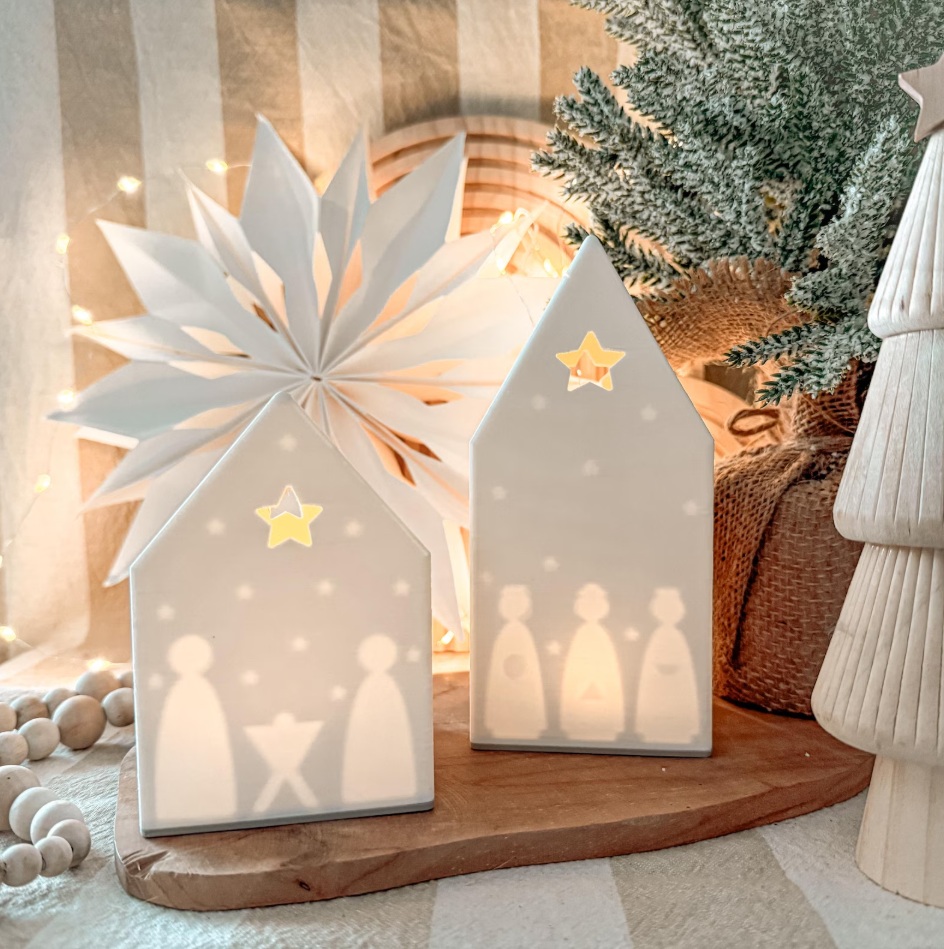 se světýlkem – jemná LED čajová svíčka uvnitř dodá teplý vánoční nádech a oživí obrázky betléma a Tří králů