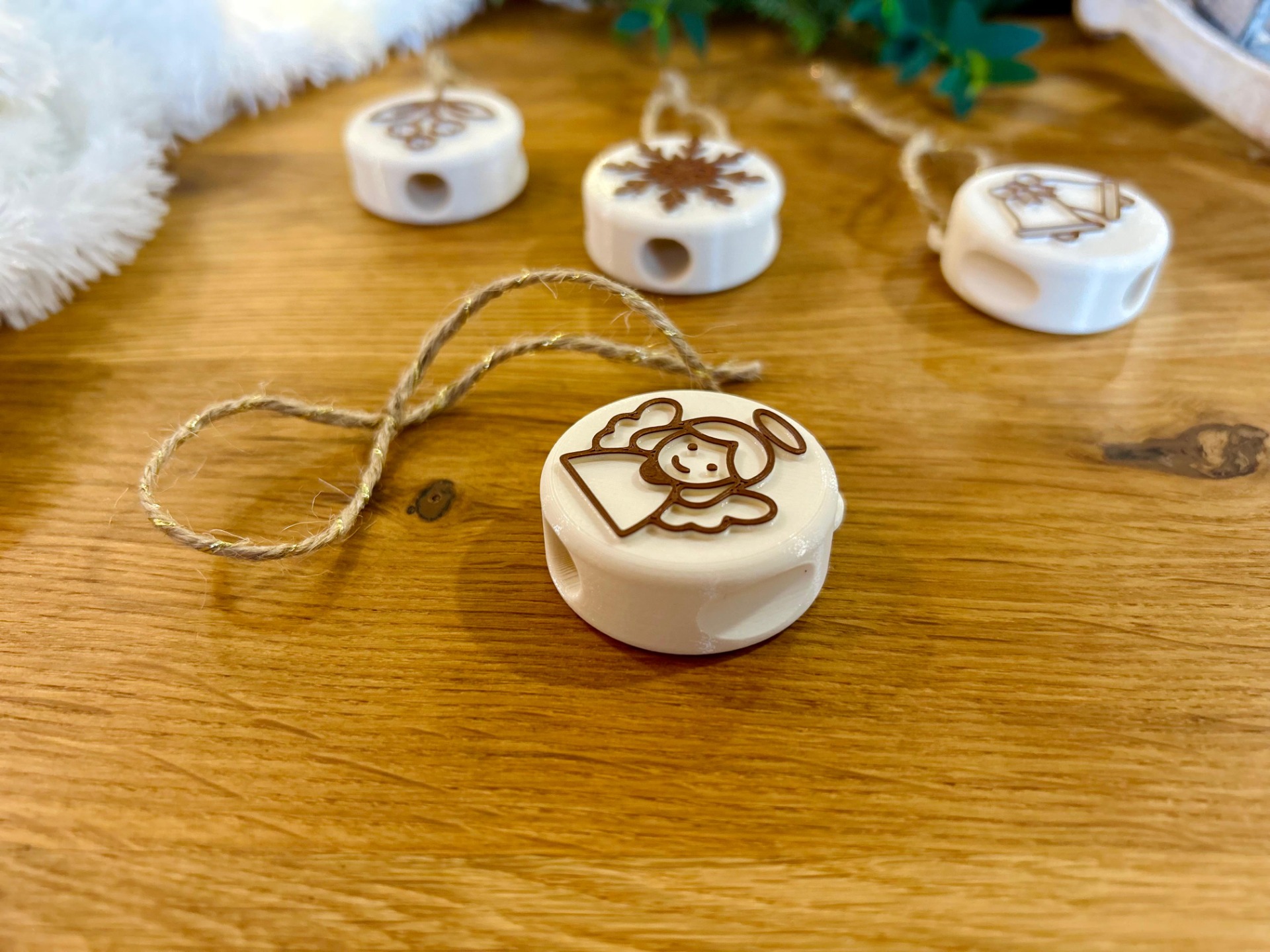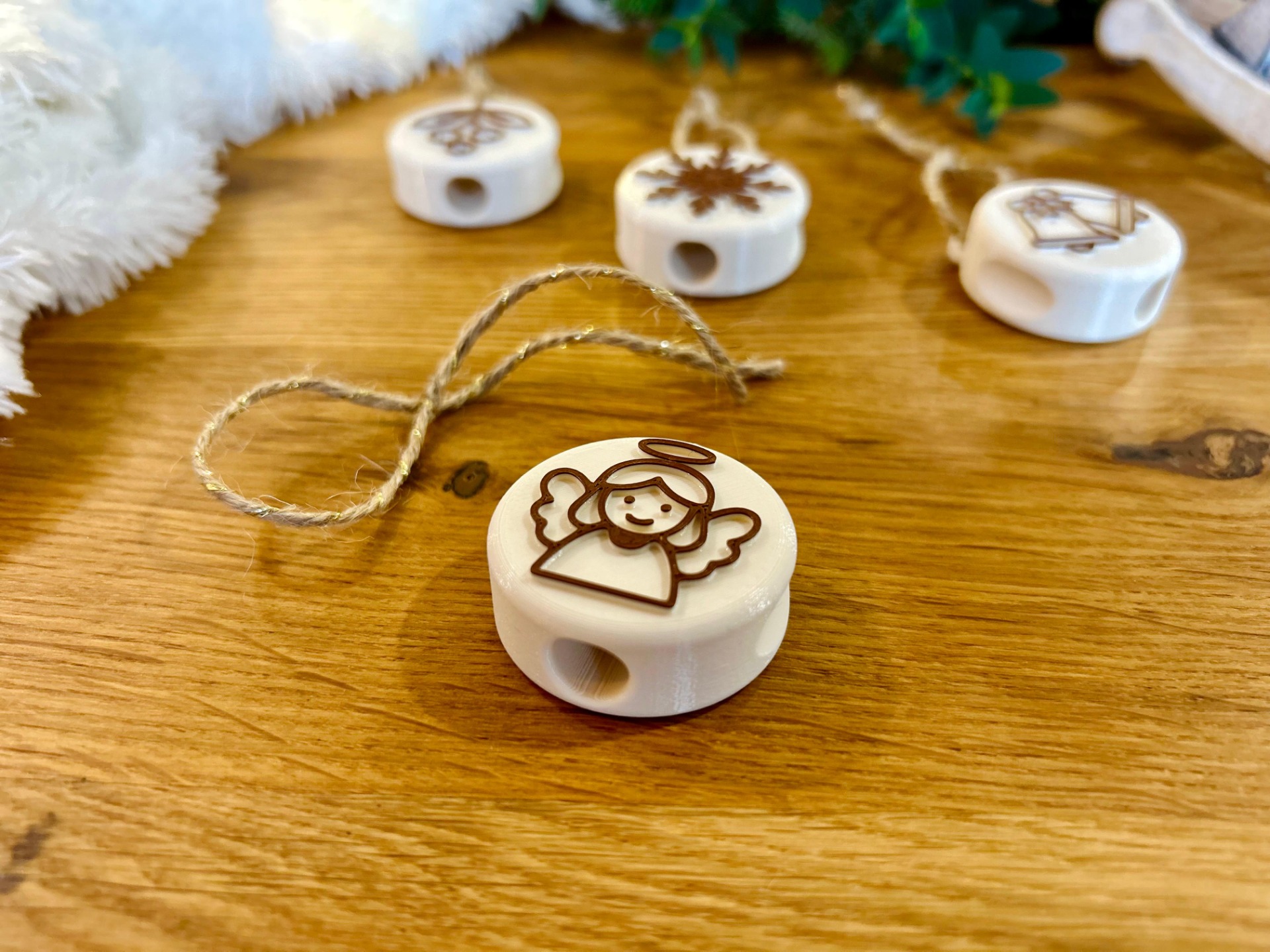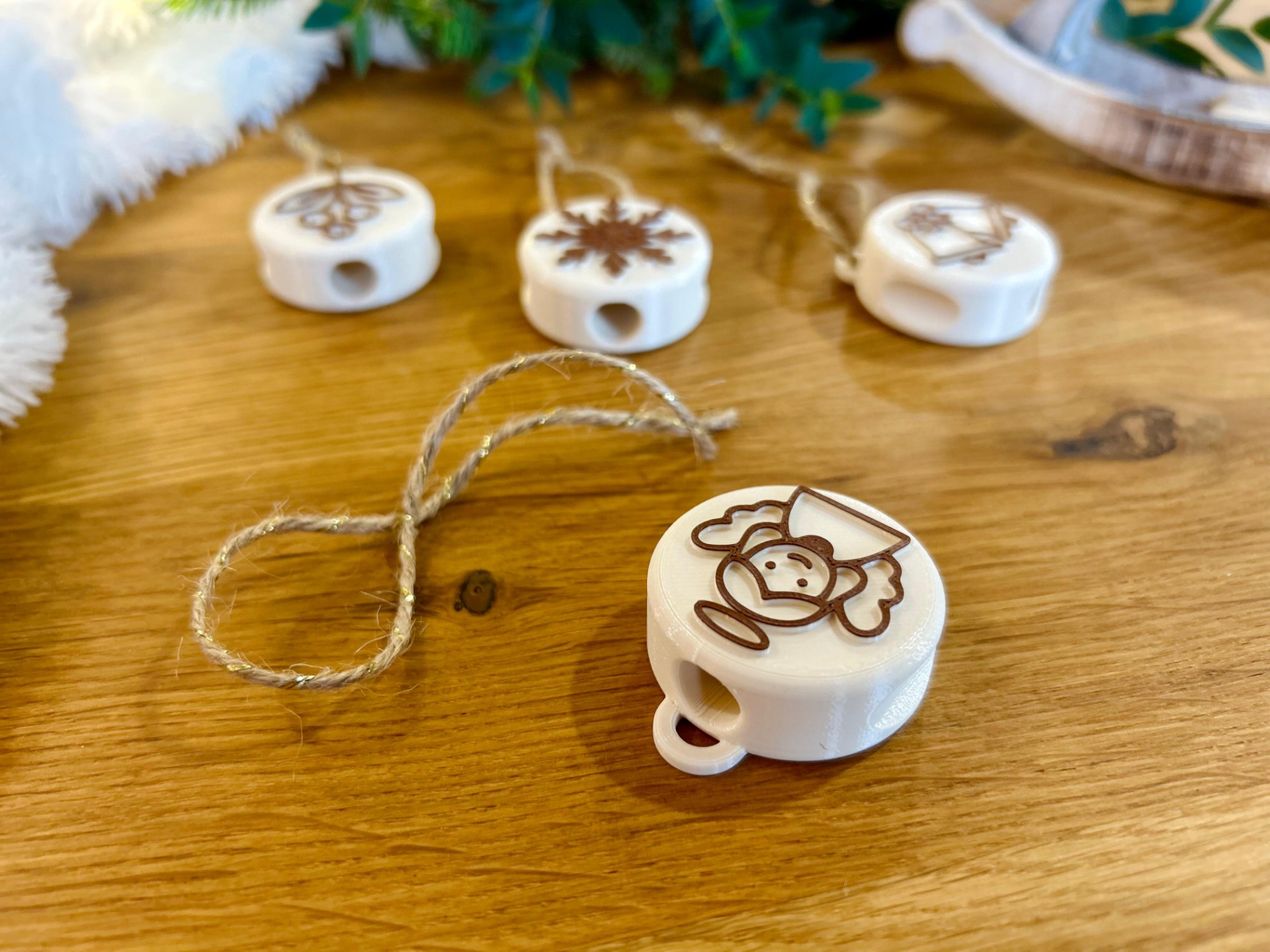24 tematických razítek vyrobených z ekologických materiálů (PLA) technologií 3D tisku – každý den jedno, inspirované českými vánočními symboly (např. perníček, jmelí, kometa, betlém, zlaté prasátko…)